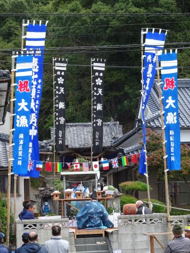 約30年ほど前から横浦地区の「あじろ」と呼ばれる漁業領域を漁船がパレードするイベントが加わりお祭りとして今でも継続しています。