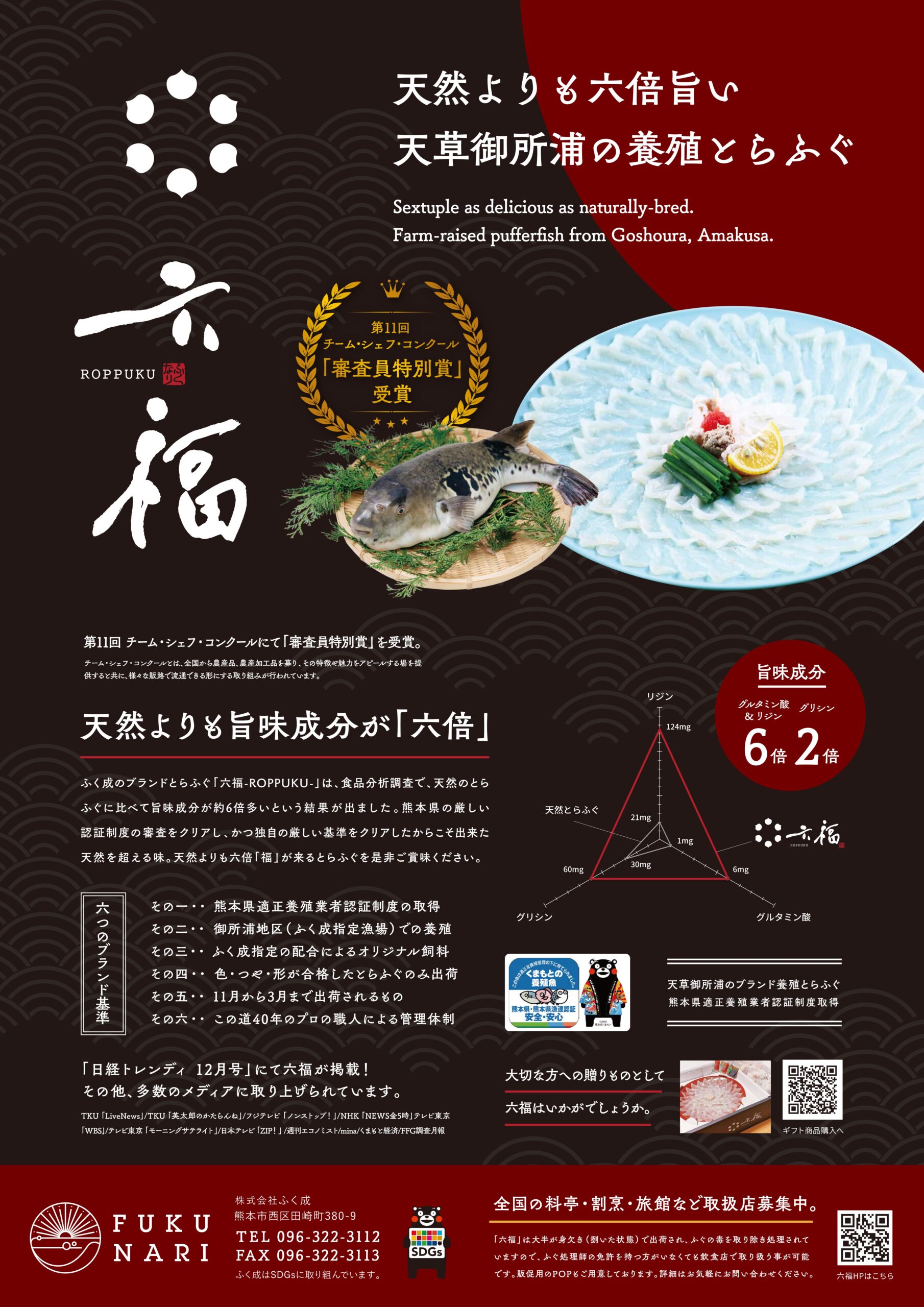 - ブランドとらふぐ「六福®-ROPPUKU-」をパートナー価格にてご提供させていただきます。