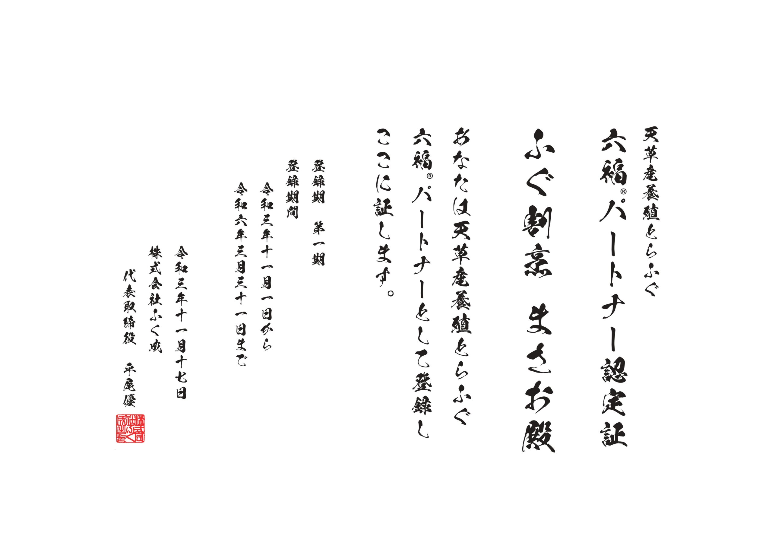 今年から【六福®-ROPPUKU-】をご愛顧いただいているお取引様とのパートナーシップをふく成と組ませていただく制度を設けました。