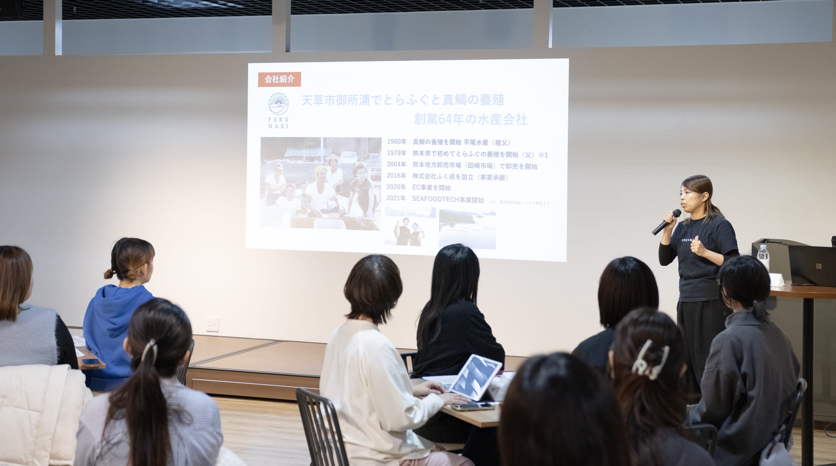 ふく成では、⽔産業をもっと⾝近に、もっと未来につなげるために、PR‧広報の⼒を⼤切にしています。